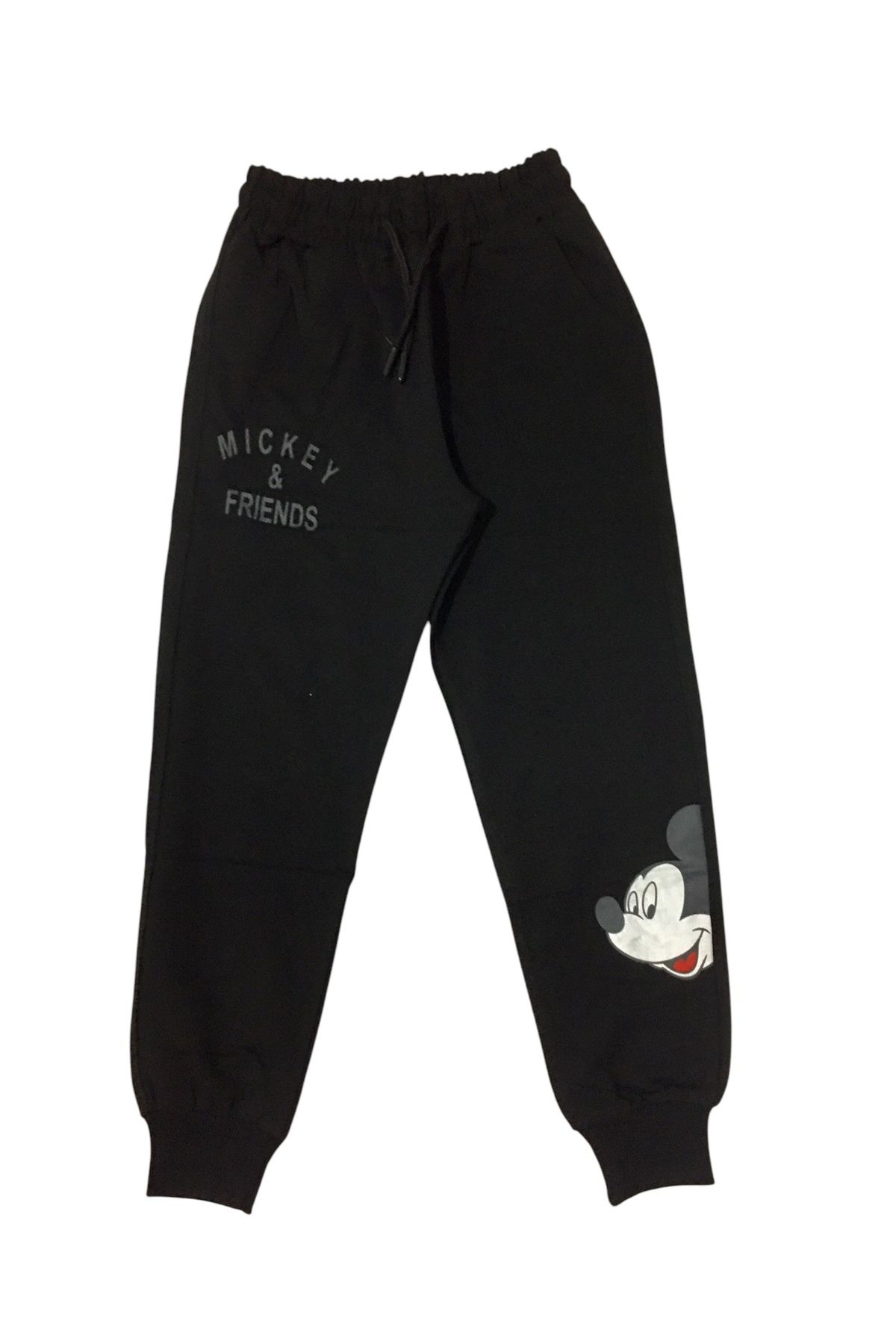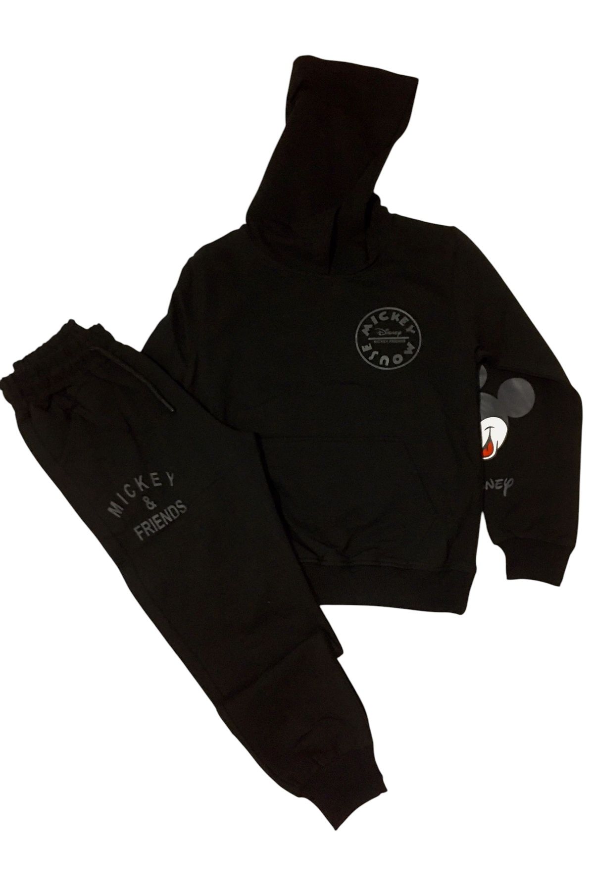 KIZ ÇOCUK %100 Pamuklu Mickeymause & Friends figür uzun kollu Kapşonlu siyah takım